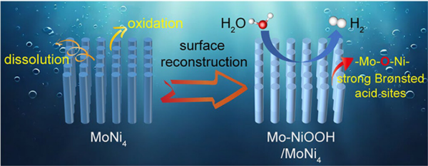 在催化碱性析氢过程中,制备的MoNi4合金催化剂表面不可避免地发生电化学重构行为,经历“溶解-氧化”结构转变。