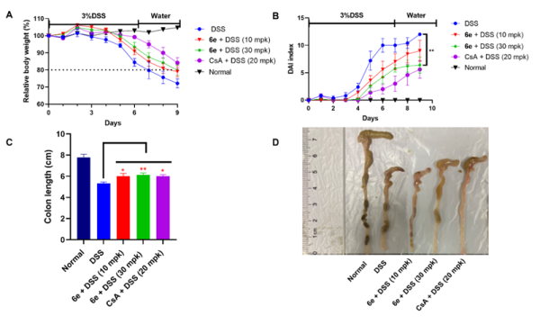 化合物6e在DSS诱导的小鼠急性结肠炎模型中的治疗效果