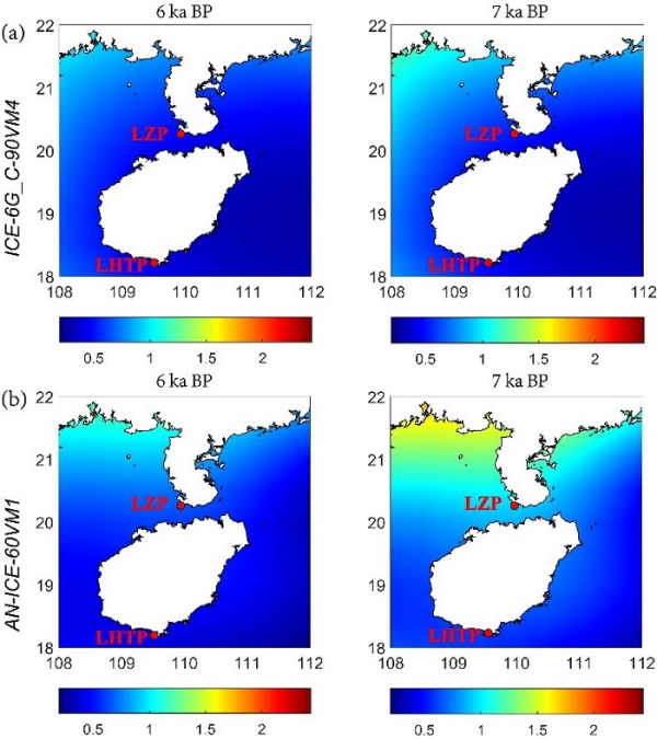 进一步研究发现,该记录与邻近雷州半岛同期珊瑚微环礁重建的海平面数据相比,存在超1.5米的差异。团队指出,这种空间上的不一致性或源于两个原因的共同作用,一是冰川均衡调整所引发的大陆杠杆效应,二是区域新构造抬升。这一发现揭示了区域构造活动对海平面空间格局的影响,凸显了当前GIA模型在构造活跃地区应用中的不确定性,强调了规范海平面变化统计建模方法的重要性,以更准确地解析区域与全球海平面变化的耦合机制。