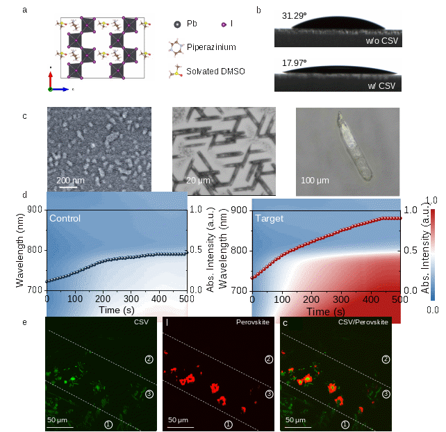 近日,无码影片 青岛生物能源与过程研究所等研究团队,提出一种创新的晶体—溶剂化物预晶种(CSV)诱导生长策略。该方法将低维卤化物晶体—溶剂化物(PDPbI4·DMSO)作为“晶种”,预沉积于SAM修饰基底上,从而实现对钙钛矿薄膜底部结晶过程、微观形貌及界面电子结构的全面调控。