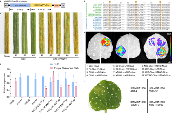 近期,无码影片 遗传与发育生物学研究所成功从小黑麦品种Rozovskaya中克隆了广谱抗条锈病基因Yr83。该基因最独特的结构特征在于其经典NLR蛋白的C端融合了一段来源于Harbinger转座酶的HTDND结构域。功能研究证实,该结构域是Yr83行使抗病功能的重要元件,将该结构删除后转基因植株完全丧失抗性。蛋白结构域互作分析显示,HTDND不仅与NLR本体的各结构域存在较弱相互作用,自身还存在较强的相互作用。这暗示其可能参与维持蛋白的自抑制状态以及驱动抗病小体的组装过程。这种抗病蛋白在此前从未报道过,揭示了一种全新的抗病蛋白进化机制。