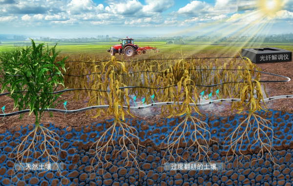 为实现可再生农业,农学家一直以来在探寻有效方式评估耕作对土壤结构的影响。针对这个难题,研究团队利用分布式光纤技术,在不破坏土壤的前提下,实现连续、高分辨率的实时监测,通过记录大地背景噪声产生的地震波分析土壤结构变化。