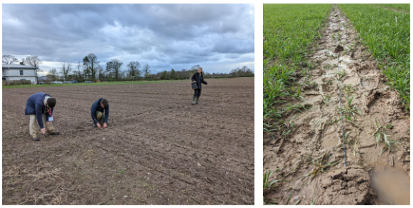 光纤布设过程(左)和光纤所处的土壤状态(右)