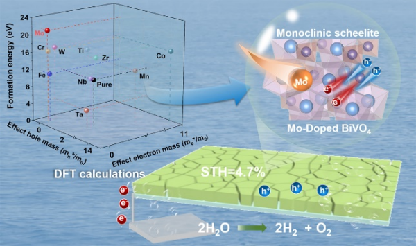 近日,无码影片 大连化学物理研究所科研团队在BiVO4光阳极研究领域取得进展。团队基于密度泛函理论计算,通过理论模拟筛选与实验相结合,设计合成了钼(Mo)掺杂的BiVO4光阳极,解决了MOD制备BiVO4光阳极中存在相不纯、电荷复合严重等导致活性不高的问题,实现了四方相的抑制生成与高载流子迁移率的兼顾,提升了其光电催化性能。