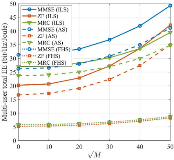 研究团队面向星地通信多用户上行传输能量效率优化问题,以及超密集低轨卫星星座覆盖环境下,用户上行传输存在的严重信号衰减与复杂多址干扰问题,将6G潜在关键技术智能超表面引入多星协作上行传输链路,实现星地通信无线传播环境重构。研究基于协作多点传输技术思想,设计了多星协作接收检测向量,并对智能超表面无源波束赋形与多用户发射功率控制进行联合优化。研究团队进一步系统分析了五种多星协作接收机制,提出了基于块坐标下降的多用户总能量效率优化算法。数值仿真结果表明,该算法在不同星地信道条件下均能显著提升系统多用户总能量效率。