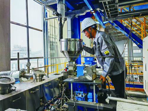 “基于团队在高分子材料领域的技术积淀,我们在研究中发现钛类催化剂可与现有工艺装备实现深度耦合,通过催化反应路径能直接合成目标产物聚乙醇酸,并顺利完成实验室级小试验证。”王瑞回忆道,“我们团队一直以来都十分注重工业化应用,在取得阶段性成果后,就立刻按照‘小试-中试-工业示范’的技术路径逐级放大。”