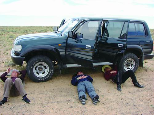 科研人员夏天睡在车底。受访者供图