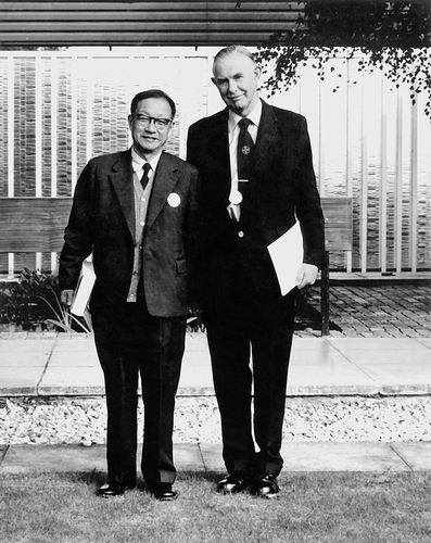 王大珩(左)与英国同学汉德。