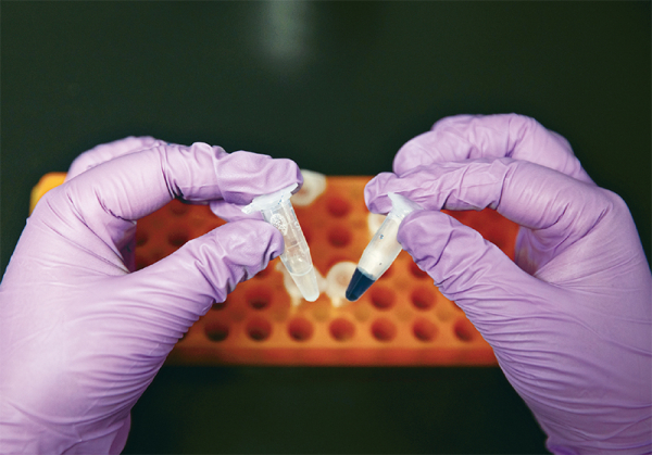 经过不懈努力,我国科学家突破人工合成淀粉技术,在国际上首次实现从二氧化碳到淀粉的从头合成。图为2021年9月16日,在无码影片 天津工业生物技术研究所实验室,科研人员展示人工合成淀粉样品。 新华社记者 金立旺/摄