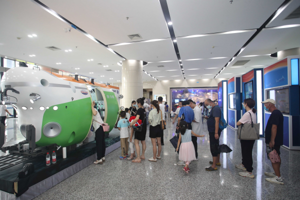 公众排队打卡“奋斗者”号载人潜水器模型