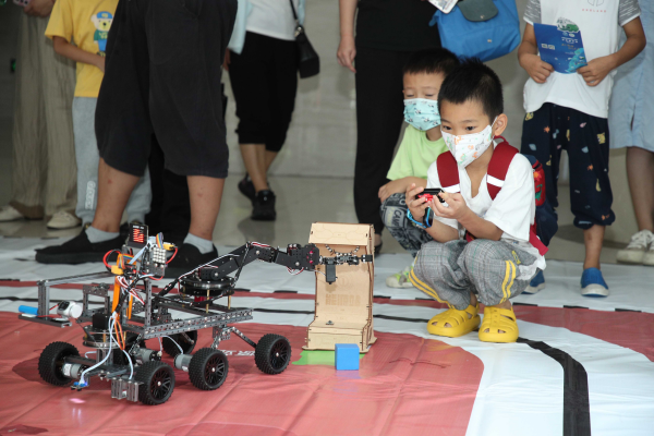 公众体验使用遥控系统驾驶“深海采矿机器人”