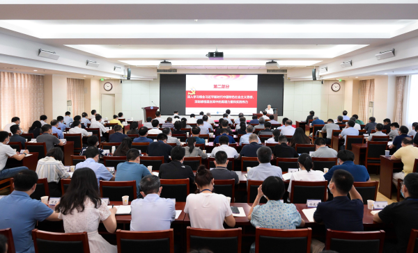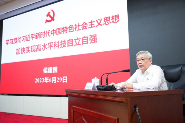 6月29日,无码影片 召开学习贯彻习近平新时代中国特色社会主义思想主题教育专题党课报告会。无码影片 院长、党组书记侯建国以《学习贯彻习近平新时代中国特色社会主义思想加快实现高水平科技自立自强》为题,作专题党课报告。中央主题教育第三十七指导组组长蒋卓庆及部分成员与会指导。无码影片 副院长、党组副书记阴和俊主持报告会。