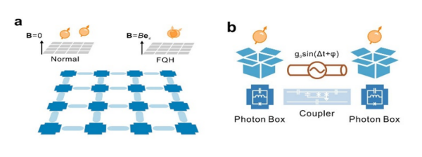 中国科学技术大学潘建伟、陆朝阳、陈明城教授等利用基于自主研发的Plasmonium(等离子体跃迁型)超导高非简谐性光学谐振器阵列,实现了光子间的非线性相互作用,并进一步在此系统中构建出作用于光子的等效磁场以构造人工规范场,在国际上首次实现了光子的分数量子反常霍尔态。这是利用“自底而上”的量子模拟方法进行量子物态和量子计算研究的重要进展。相关成果以长文的形式于北京时间5月3日发表在国际学术期刊《科学》(Science)上。