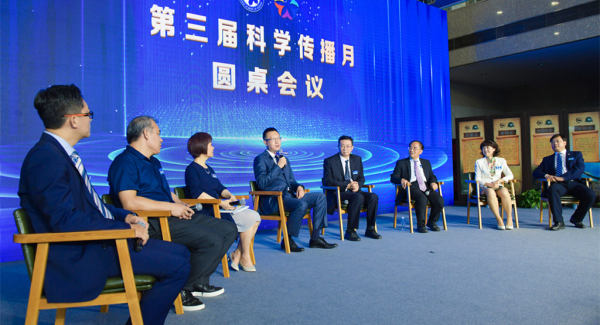 7月23日,第三届科学传播月圆桌会议在中科院古脊椎动物与古人类研究所举办。中科院党组成员、副秘书长、科技创新发展中心主任周琪,科学传播局局长周德进,科创中心副主任李静围绕公众科学日和科学传播月的筹办情况、成果及成效,线上活动的特色和亮点以及对于线上科学传播的看法与期待进行了交流;古脊椎所所长、党委书记邓涛,中科院院士周忠和,物理研究所研究员曹则贤及计算技术研究所研究员王元卓也分享了组织和参与科普线上活动的心得体会,交流了对科普直播课、科普短视频等“云科学”传播形式的理解与看法。圆桌会议由央视创造传媒创意副总监王雪纯主持。