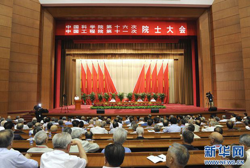 第十六次院士大会和中国工程院第十一次院士大会上为两院院士作报告。新华社记者 饶爱民 摄