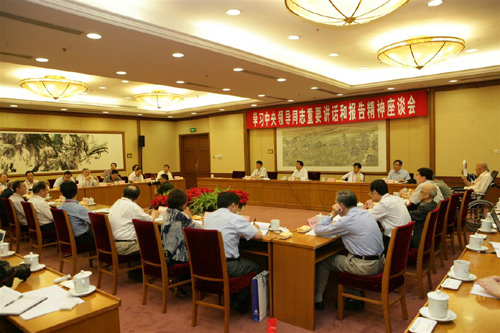 副院长李静海、詹文龙出席座谈会。参加座谈会的有来自六个学部的二十多位院士。与会院士畅谈了学习胡锦涛总书记重要讲话和温家宝总理重要报告的体会,并结合自己的工作实际和学部工作,就进一步深入学习贯彻讲话精神提出意见和建议。