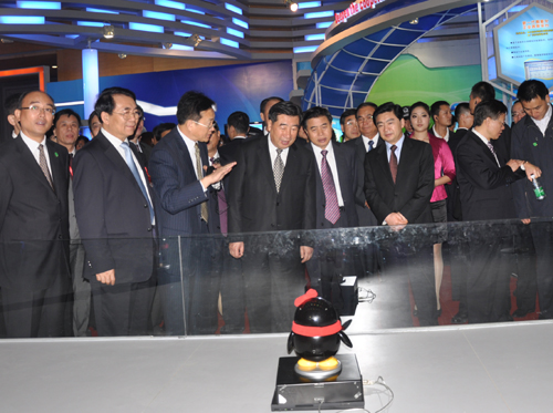 11月16日上午,第十二届中国国际高新技术成果交易会在深圳市会展中心举行。中央政治局委员、国务院副总理回良玉在中科院常务副院长白春礼、副院长施尔畏的陪同下视察中科院高交会展区。