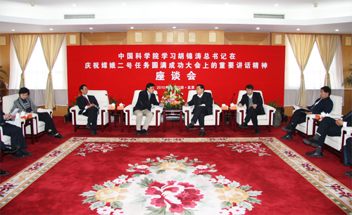 在京召开座谈会,学习胡锦涛总书记当天上午在庆祝嫦娥二号任务圆满成功大会上的重要讲话精神。