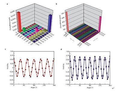 如何进一步高效地扩展纠缠量子比特数目成了量子信息领域的一个严峻的挑战。潘建伟、陈增兵、彭承志等研究人员意识到光子具有多种量子自由度,每个量子自由度在合适的条件下都有可能定义一个量子比特,理论上这些不同的自由度之间也可以形成纠缠,即所谓的超纠缠。打个形象的比喻:超纠缠犹如金庸小说中的双手互搏术,某个光子的两个自由度可以同时与另外某个光子的两个自由度纠缠起来,从而可以把一个光子当成两个量子比特用。该想法提供了一种有效扩大量子纠缠这一重要资源的途径。实验小组随后根据这个想法开展了细致的探索,完美地实现了由五个光子极化状态和空间状态相干叠加形成的十个量子比特薛定谔猫态,并在此基础上演示了基于纠缠的相位超精细分辨。这一成果表明,我国在多粒子纠缠研究领域继续保持了国际领先水平。