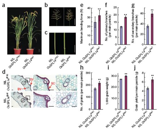 OsSPL14基因突变使水稻株型、穗粒重等产量性状发生显著变化