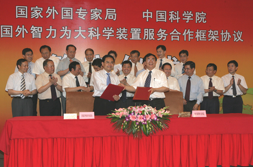 签字双方一致认为,《引进国外智力为大科学装置服务合作框架协议书》的签署是面向未来、加强院局合作的国际科技合作新举措,必将促进国家科技创新,为建设创新型国家再立新功。