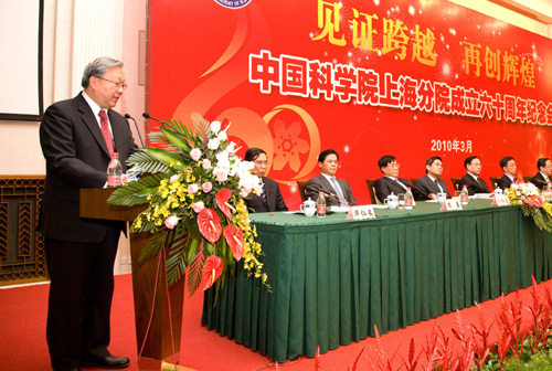 俞正声代表上海市委、市政府,向中科院上海分院成立60周年表示祝贺,向为我国经济社会发展、国家安全和科技进步做出了卓越贡献的上海分院全体同志表示衷心感谢和崇高敬意。他希望中科院上海分院进一步发挥国家科研机构的科技引领作用,切实解决关系国家全局和长远发展的基础性、战略性、前瞻性的重大科技问题,获得更多自主知识产权,在更多领域、更高层级上率先取得突破;进一步推动上海战略性新兴产业发展,使创新成果更好地转化为现实生产力;进一步做好上海世博会的科技支撑工作,充分发挥高新技术的示范带动作用,为世博会成功举办提供更多更好的技术支持。上海市将一如既往地支持上海分院的发展,为上海分院创新创业提供更好的土壤。