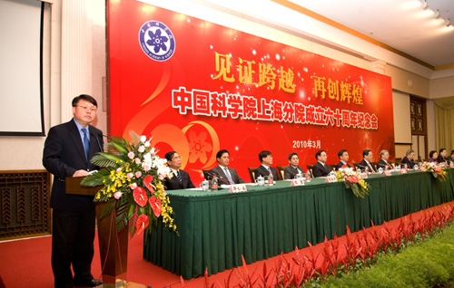 中科院院士、原上海微系统所所长邹世昌,中科院院士、上海生命科学院院长陈晓亚,参与上海光源工程建设的上海应用物理所邓海啸博士分别代表老科学家、中青年科学家发言。上海市委、市政府的有关负责同志,部分区县领导,上海分院系统部分院士代表,中青年科学家代表,以及中科院沪区各单位负责同志380余人参加了纪念会。