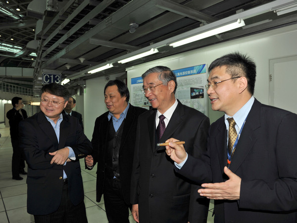 和上海市政府共同建设的上海同步辐射光源工程,是进行材料科学、生命科学、环境科学等学科前沿基础研究和高新技术开发应用的大型综合平台,标志着我国同步辐射光源技术进入了世界先进行列,对我国建设国家知识创新体系、提升科技综合实力具有重大意义。在光源工程的电子储存环隧道、内技术走廊,胡锦涛专注地察看这套大科学装置的关键设备,详细了解装置的物理原理、设备性能和应用领域。在光束线试验站,总书记认真听取利用光源工程开展科学研究的成果介绍,充分肯定工程建成以来对我国科技进步发挥的重要作用。得知科研人员和工程建设者仅用52个月就又好又快完成了光源工程建设,胡锦涛向所有为光源工程建成作出重要贡献的同志们表示崇高敬意。总书记勉励大家再接再厉,一方面用好已建成的设施,不断提高科学实验水平,更好为发展科学技术服务;另一方面在科学论证基础上继续搞好后续工程建设,为我国光源事业发展作出新的更大贡献。
