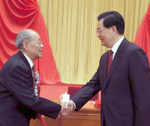 国家主席胡锦涛向郑哲敏院士颁发奖励证书