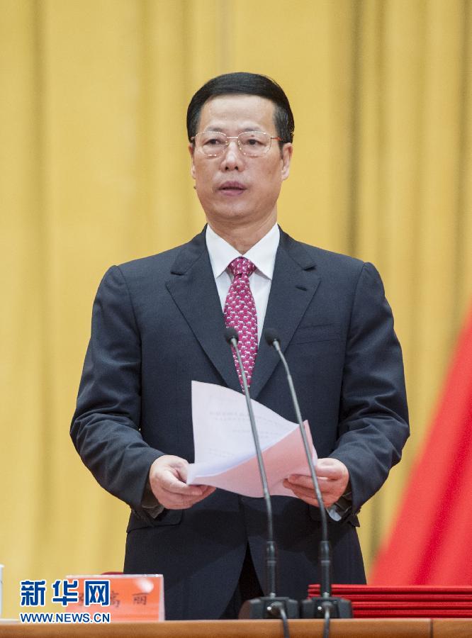 中共中央政治局常委、国务院副总理张高丽主持大会。 新华社记者 王晔 摄