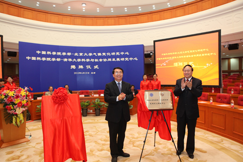 白春礼、朱善璐为中科院学部-北京大学气候变化研究中心揭牌