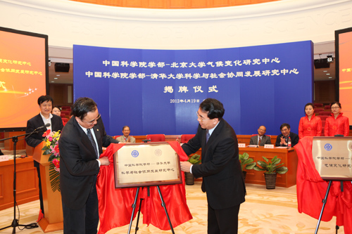 白春礼、谢维和为中科院学部-清华大学科学与社会协同发展研究中心揭牌