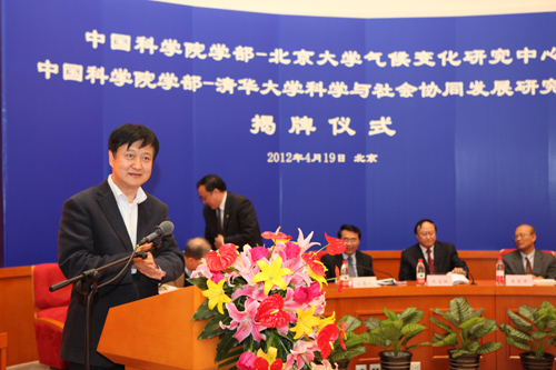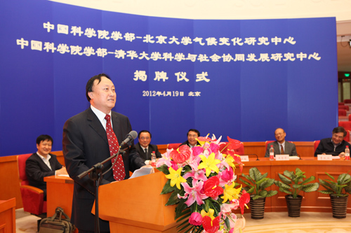 院长、学部主席团执行主席白春礼分别和北京大学党委书记朱善璐、清华大学副校长谢维和一起,为两个研究中心揭牌。揭牌仪式由中科院副院长李静海主持。