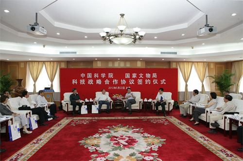 和国家文物局在北京签署了科技战略合作协议。中科院院长、党组书记白春礼,文化部党组成员、副部长、国家文物局局长励小捷出席签约仪式并讲话。中科院副院长李静海、国家文物局副局长宋新潮分别代表双方在协议上签字。
