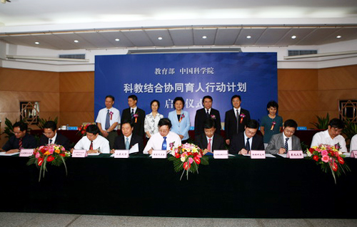 中科院院长白春礼及教育部负责同志参加启动仪式,21所“211”高校和中科院31个研究所现场签署了战略合作协议。据了解,“科教结合协同育人行动计划”首批将有80余家中科院研究所、50余家高校参加,每年将有15万名以上的研究生、本科生参与其中,有1800多人次院士、科学家、教授到高校授课,到中学开设科普讲座。