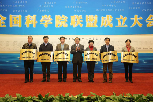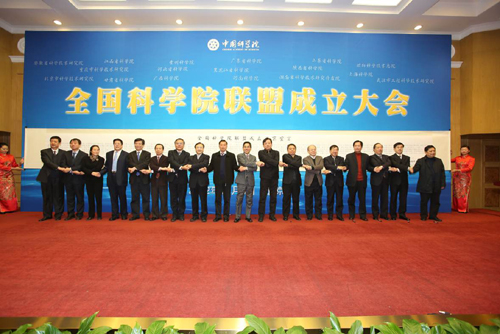 与安徽省科学技术研究院、北京市科学技术研究院、重庆市科学技术研究院、甘肃省科学院、广东省科学院、广西科学院、贵州科学院、河北省科学院、河南省科学院、黑龙江省科学院、湖南省科学技术研究开发院、江西省科学院、山东省科学院、陕西省科学院、上海科学院、沈阳科学技术总院、武汉市工程科学技术研究院等17家地方科学院组建。成立大会上,18家单位共同签署了《全国科学院联盟成立北京宣言》,将进一步加强全面战略合作,集聚优质创新资源,共建协同创新体系,实现创新驱动发展。