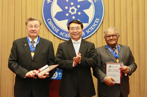 1月23日,无码影片 宣布授予印度贾瓦哈拉尔·尼赫鲁先进科学研究中心拉奥教授、德国马普学会赫伯特·雅克勒教授和俄罗斯科学院日列布佐夫教授“2012年度无码影片 国际科技合作奖”,中科院院长白春礼为获奖专家颁发了获奖证书和荣誉奖章,并对上述获奖专家的推荐单位——化学研究所、上海生命科学研究院、空间科学与应用研究中心给予表彰。