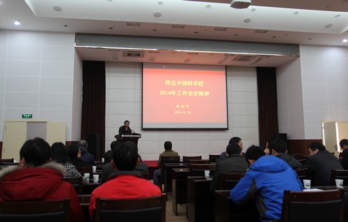 1月26日,中科院测量与地球物理研究所召开全所职工大会,学习传达贯彻中科院2014年度工作会议精神。