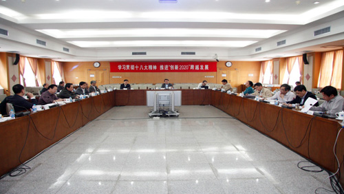 党组举行专题学习会,深入学习贯彻党的十八大和全国“两会”精神,贯彻落实近期中央领导同志对科技工作及中科院工作提出的新要求。中科院院长、党组书记白春礼主持学习会。按照年度学习计划,中科院秘书长邓麦村,副秘书长潘教峰、邓勇、吴建国分别发言。院党组理论学习中心组全体成员参加学习会。