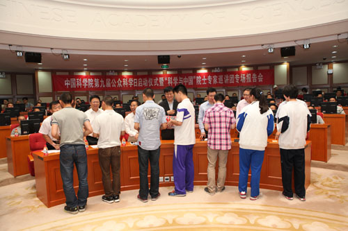 在启动仪式上,李静海等与会领导代表中科院向参加启动仪式的学校代表赠送了中科院主编的《中国国家地理》、《Newton-科学世界》等科普杂志,并启动了“用手机把科学带回家”公众科学日移动科普联展上线仪式。
