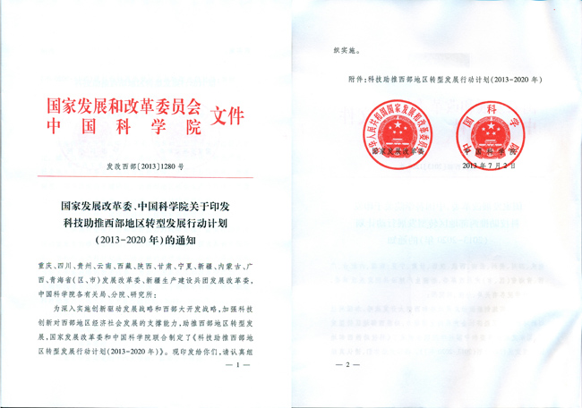 为深入实施西部大开发战略,中科院与国家发展改革委近年来联合推动中科院所属科研机构与西部地区政府、企业开展合作,取得良好成效,得到地方政府充分认可。2012年下半年以来,为全面落实党的十八大精神,优先推进西部大开发,探索建立长效合作机制,国家发改委与中科院经多次深入探讨,决定共同制定并启动实施《科技助推西部地区转型发展行动计划(2013-2020年)》(以下简称《行动计划》)。