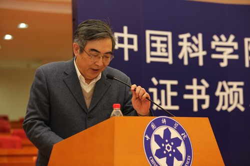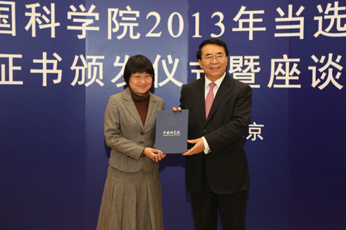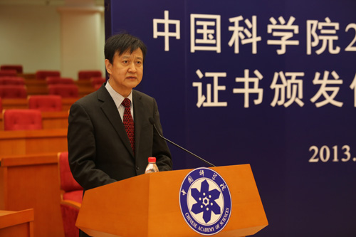 白春礼为2013年当选院士颁发证书