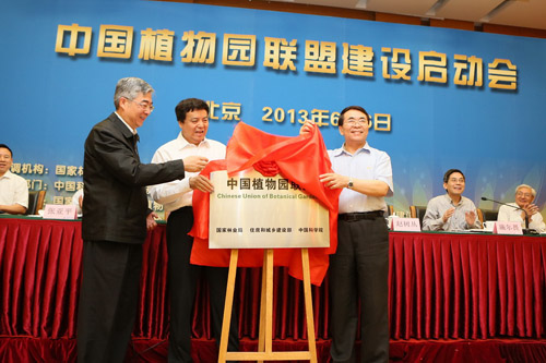 白春礼、赵树丛和陈重为“中国植物园联盟”揭牌