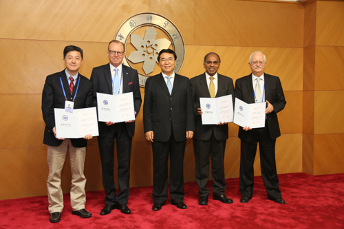 白春礼为部分2013年新当选中科院外籍院士颁发外籍院士证书