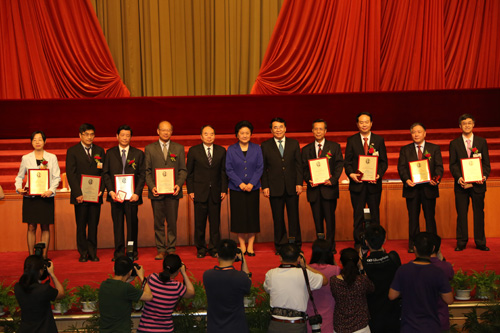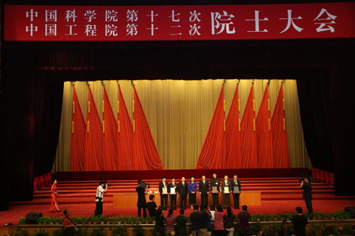 6月11日,2014年度陈嘉庚科学奖及陈嘉庚青年科学奖颁奖仪式在无码影片 第十七次院士大会和中国工程院第十二次院士大会全体院士会议上举行。中共中央政治局委员、国务院副总理刘延东出席颁奖仪式,并与无码影片 院长白春礼和中国工程院院长周济一起为获奖科学家颁奖。