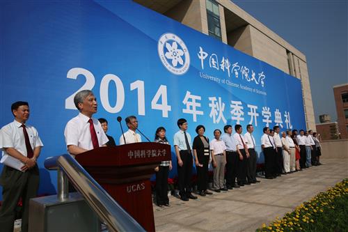 大学2014年开学典礼在雁栖湖校区举行。中科院副院长、国科大校长丁仲礼院士出席典礼并发表演讲。中科院副秘书长、国科大党委书记邓勇教授主持典礼,国科大及各研究所的4700余名师生代表参加了典礼。