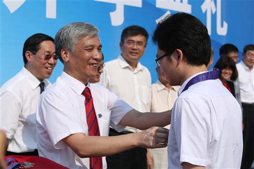 开学典礼上,丁仲礼还向获得2012-2013学年“三好学生标兵”、“优秀学生干部”、“优秀毕业生”荣誉称号的15名学生代表颁发了奖章。