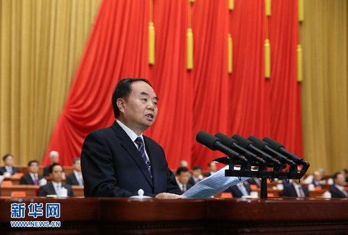 第十七次院士大会、中国工程院第十二次院士大会在北京人民大会堂隆重开幕。这是中国工程院院长周济致开幕词。新华社记者 庞兴雷 摄