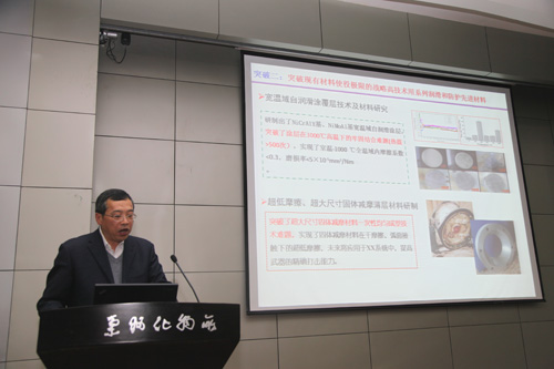 王齐华作了党建与创新文化工作报告。他指出,2014年兰州化物所在中科院党组、分院党组的领导下,认真学习和贯彻党的十八大和十八届三中、四中全会精神、习近平总书记系列重要讲话精神,围绕“创新2020”,在加强党的自身建设、加强党支部建设和党员教育管理、作风建设、反腐倡廉建设、创新文化建设等方面开展了大量卓有成效的工作。2015年将继续坚持以十八大精神为指引,认真学习贯彻党的十八大、十八届四中全会精神以及中科院党组会精神,紧紧围绕科研中心工作,着眼于科技人员和科技创新的需求,大力提高研究所党建科学化水平,为推动研究所“率先行动计划”和“一三五”规划发挥可靠的政治核心和保障监督作用。