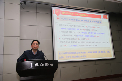 夏春谷作了题为《推进“一三五”规划,学习贯彻率先行动计划》的年度工作报告,介绍了2014年研究所科研项目、经费收支、人才队伍、科研产出、平台建设、合作交流等基本情况,“一三五”工作进展、改革创新举措、条件保障与技术支撑、学习贯彻“率先行动”计划情况、研究所面临的机遇与挑战以及2015年工作重点等。
